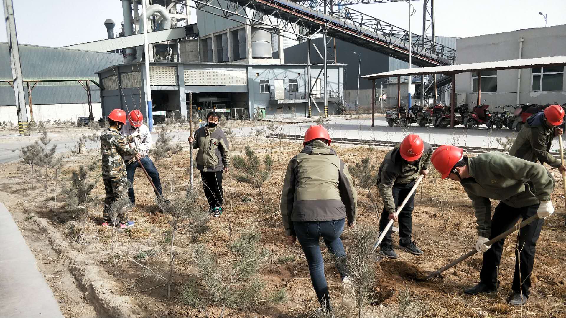 長期以來,公司秉承“留住青山綠水,造福子孫后代”的環保理念,在樹種來源、移植和工具制作上進行了精心的準備,涉及栽植樹苗有九月梅、松樹、楊樹、榆樹共計上萬顆,栽植區域有辦公樓前花園、成品窯頭南側空地、質檢科前后綠化帶,電儀總降西側空地,生料裝置一次配料西側及辦公室門前空地及原煤堆棚東側空地等。