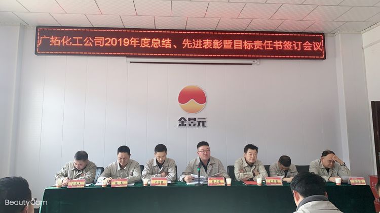 春節前期,廣拓能源化工公司組織召開2019年度工作總結、先進表彰暨目標責任書簽訂會議。本次會議由公司副總經理盧志銀主持,化工公司總經理、副總經理、安全總監、副總工程師出席,25名先進集體、個人及70余名職工代表參加。
