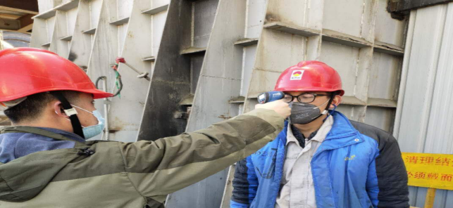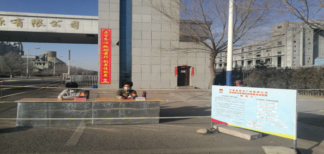 在公司北大門,他們對進出廠區職工及車輛登記,嚴格“疫情”防控工作。