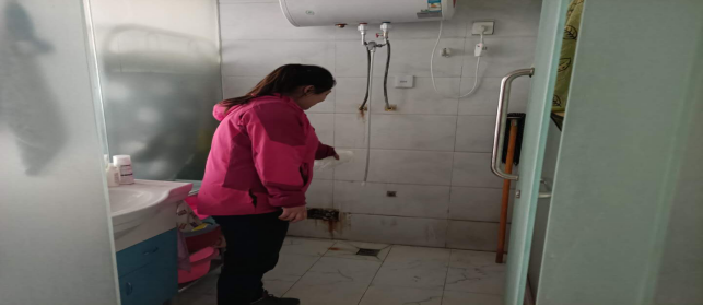在宿舍進行衛生消毒。