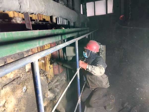在檢修現場,隨處可見檢修人員忙碌的身影,他們不斷的變換著動作,靈活地使用各種型號的工器具。檢修過程中每一個起吊都小心翼翼,每一個動作都井然有序。只看見熱力裝置長毛文軒從爐膛狹小的人孔鉆進爐膛,借助二十多米高的腳手架,對水冷壁管的磨損情況進行細致檢查,對澆注料、燃燒器、過熱器等受損情況也進行了逐一查看。他帶領熱力裝置全員由點到面,由里到外、全方位監管督導,有效提升檢修質量。