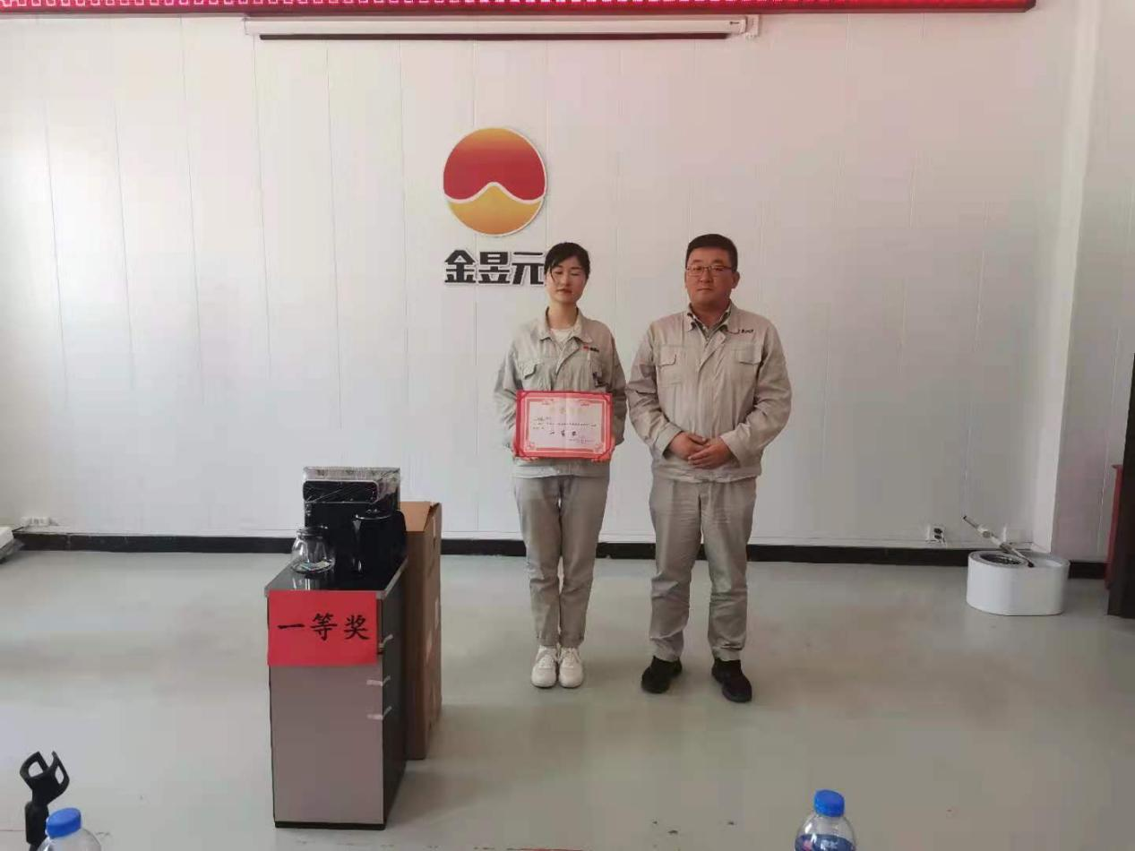 經過激烈角逐,最終本次比賽的一等獎由電解裝置的海娟獲得,獎品為茶吧機一臺,化工公司總經理賈存富為她頒發了獎品和榮譽證書。