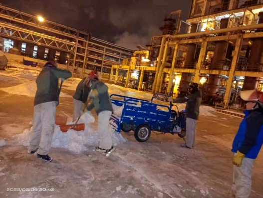 正月初五,固原迎來了2022年的第一場雪。堅守夜班的化工橫一班接班后,調(diào)度就對橫一班員工強調(diào):“今天白天下了一天雪,晚上氣溫肯定會下降,現(xiàn)場巡檢時一定要注意防滑,上下樓梯抓好扶手,穩(wěn)走慢行。防凍防凝是巡檢重點內(nèi)容,大家要加大巡檢力度和頻次,尤其是要保證保溫伴管、排污閥、疏水閥等關(guān)鍵部位正常,操作人員要認真監(jiān)控,及時觀察控制參數(shù)的變化情況,精準調(diào)控,確保安全生產(chǎn)運行”。一場大雪后,固原市銀裝素裹,人們在盡情地享受瑞雪樂趣。但在廠區(qū)內(nèi)“沙沙”聲、“咣咣”聲不絕于耳,當班的班組長及員工“以雪為令”,迅速行動,不畏嚴寒,揮舞著鐵鍬、掃帚、簸箕等一切能派上用處的除雪工具,你鏟我掃相互配合,全面徹底清理室外道路、巡檢通道、裝置現(xiàn)場等區(qū)域的積雪和凍冰,經(jīng)過數(shù)小時的奮戰(zhàn),現(xiàn)場干凈整潔,切實保證了裝置安穩(wěn)生產(chǎn)。