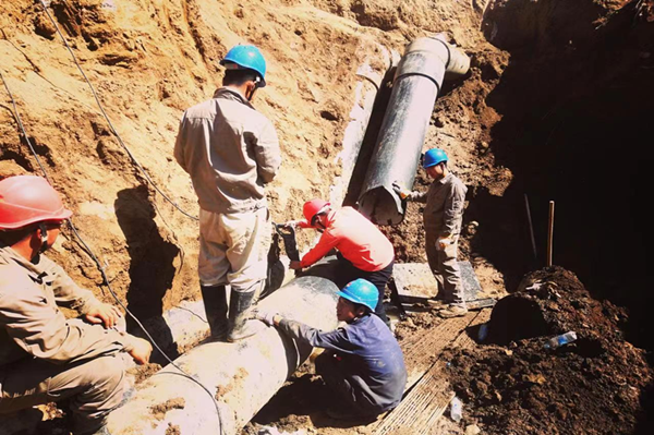 為盡快修復好呲漏的管道,大家冒著大雨加班加點搶修。檢修現場,無論是管理人員還是維修人員,他們分工明確,各司其職,配合密切,時間在緊張有序的氛圍中,悄然來到下午14時,在緊固完最后一個螺栓后,滲漏的淡水戛然而止,預示著此次淡水管道泄漏點搶修工作圓滿完成。