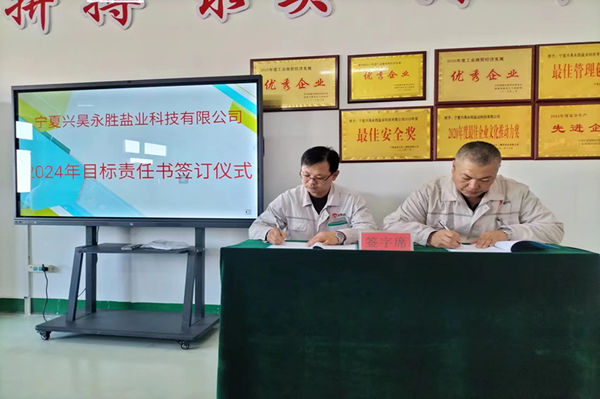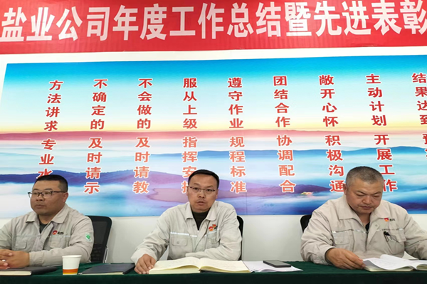 2024年1月8日下午,鹽業(yè)公司組織召開了2023年度總結(jié)表彰暨2024年目標(biāo)責(zé)任書簽訂大會。會議由總經(jīng)理尚繼榮同志主持,副經(jīng)理、科室長、裝置長、受獎人員及員工代表參加。