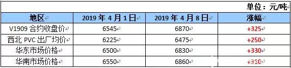 沉寂3個(gè)月的PVC,踏入4月后表現(xiàn)可謂突飛猛進(jìn)。尤其在PVC期貨實(shí)現(xiàn)移倉換月后,漲價(jià)動能得到充分激發(fā),大舉突破震蕩狀態(tài),從4月1日至4月8日,大商所V1909合約收盤價(jià)漲幅近5.0%。而PVC生產(chǎn)廠家在庫存低位的情況下看漲情緒較強(qiáng),助推漲價(jià)潮在短時(shí)間內(nèi)愈演愈烈。
