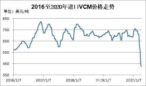 圖2 2016至2020年進(jìn)口VCM價格走勢