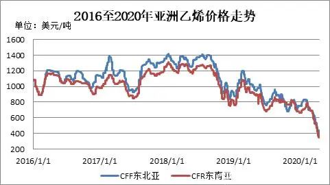 圖1 2016至2020年亞洲乙烯價格走勢