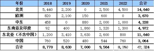 表2 2018-2022年全球乙烯擴(kuò)建情況(單位:千噸)