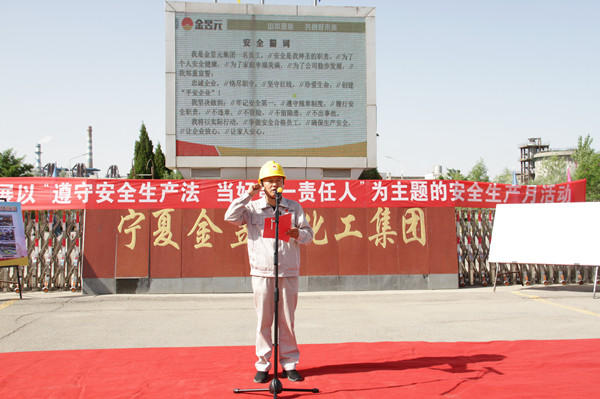 今年6月份是全國第21個“安全生產(chǎn)月”。今年的活動主題是“遵守安全生產(chǎn)法,當好第一責任人”。6月1日,寧夏金昱元化工集團股份有限公司分別在青銅峽片區(qū)和固原片區(qū)舉行“安全生產(chǎn)月”活動啟動儀式。