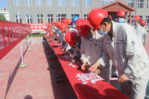 公司領導和職工代表莊嚴宣誓,承諾深入貫徹落實黨中央、國務院關于安全生產(chǎn)的重大決策部署,牢固樹立安全發(fā)展理念,以防范化解重大風險、及時消除安全隱患、堅決遏制生產(chǎn)安全事故,矢志不渝堅守安全紅線意識和底線思維,從我做起、從細節(jié)做起,高標準、嚴要求抓好安全管理,共同維護企業(yè)安全穩(wěn)定局面。