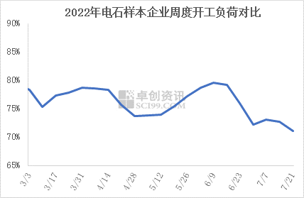 本周電石企業開工繼續下滑,主要是內蒙古、寧夏、陜西等地均有降負荷或是生產不正常現象出現,另外四川有臨時性的電力供應不足影響開工負荷現象。所以雖也有電石爐檢修結束或是開工恢復,但整體開工負荷仍是下滑。目前仍有電石企業計劃檢修或是臨時降負荷,短期企業恢復開工積極性不高,預計下周開工負荷或仍有小幅下滑,整體仍低位。