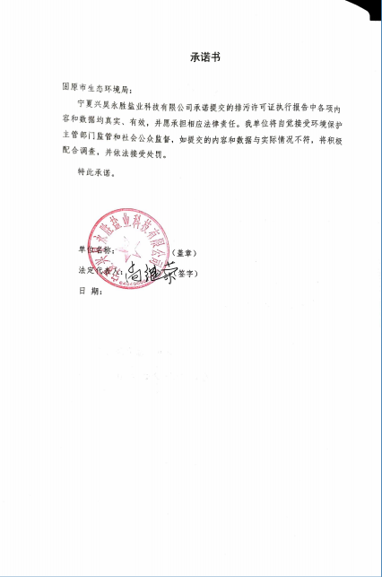 寧夏興昊永勝鹽業(yè)科技有限公司2023年度排污許可執(zhí)行報告